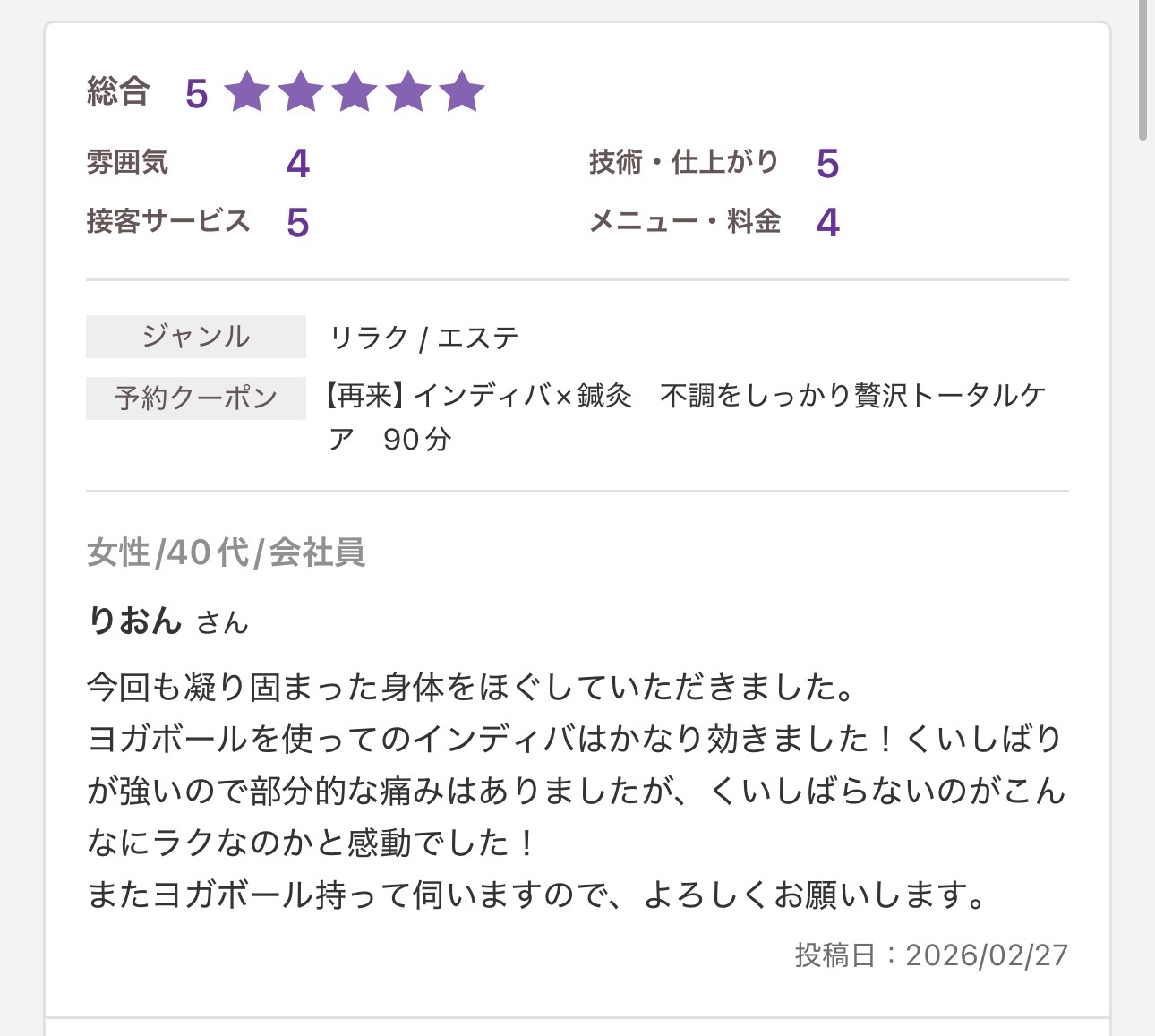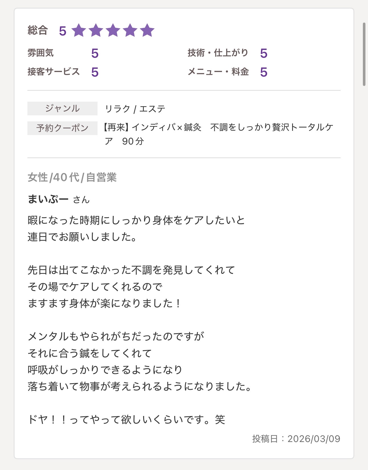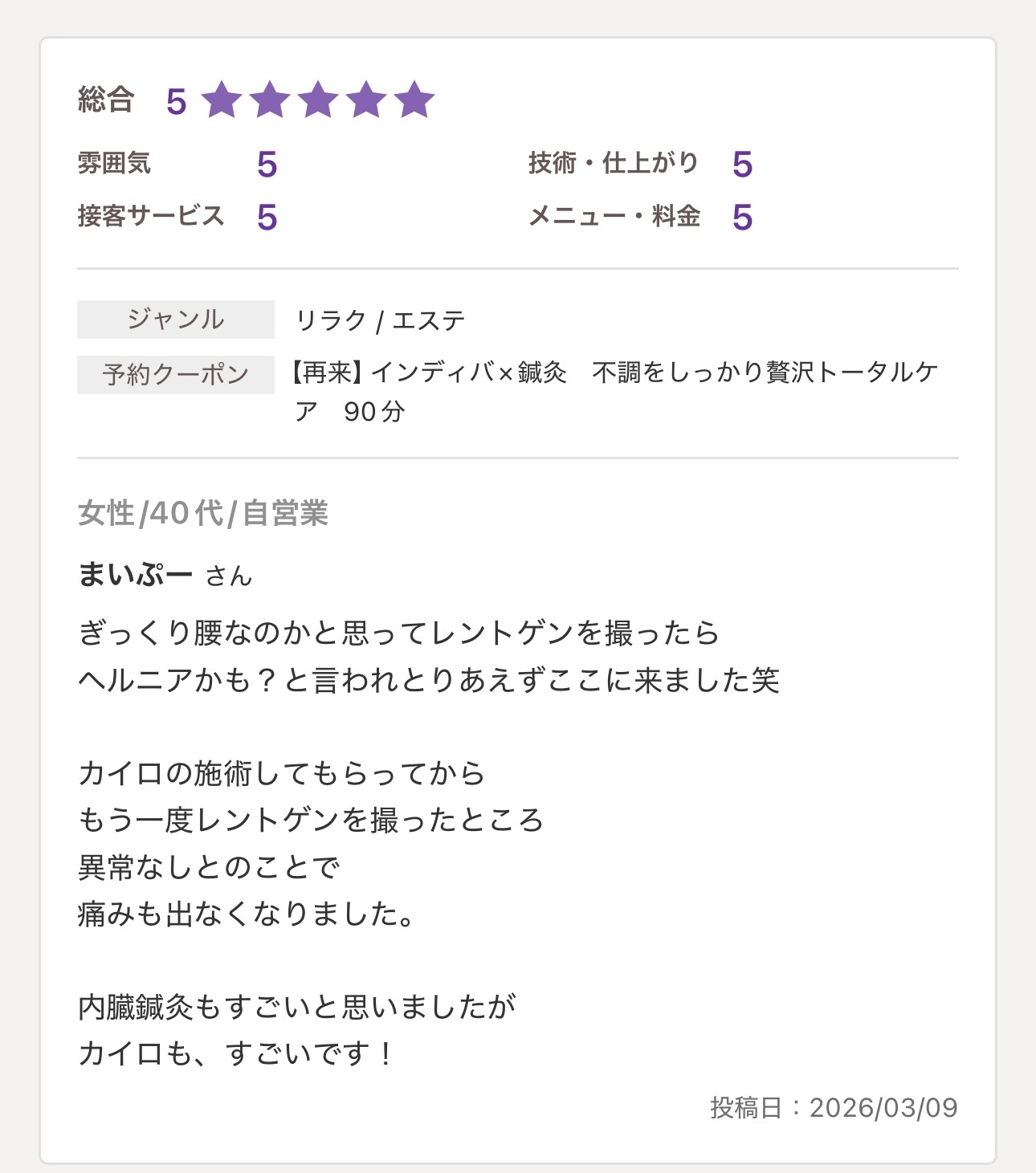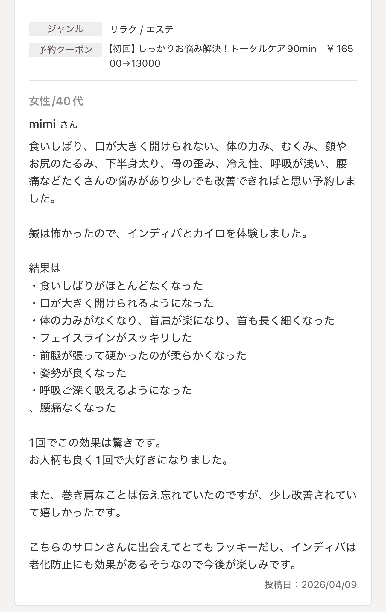 - 女性鍼灸師で完全予約制、待ち時間はほぼゼロ